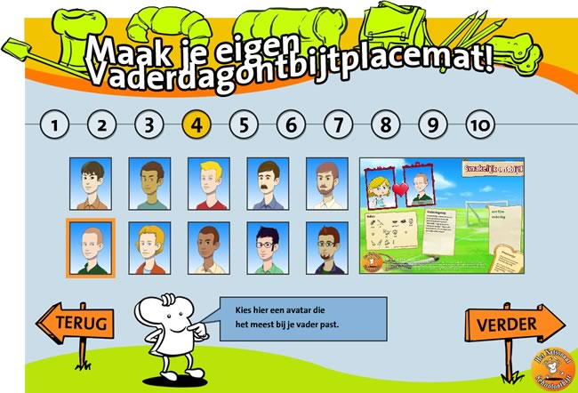 Geef aan of je een jongen of een meisje bent en in welke groep van de basisschool je zit. En kies een thema dat bij jou past. Je kan de achtergrond, plaatjes en tekst die op de placemat komt zelf regelen. Vergeet niet om een lieve vaderdagboodschap voor je pap te schrijven.