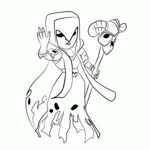 Heks met skelettenTekst aan kleurplaat toevoegen Bekijk en print de grote versie