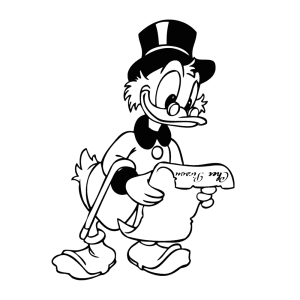 Dagobert Duck met zijn geldTekst aan kleurplaat toevoegen Bekijk en print de grote versie