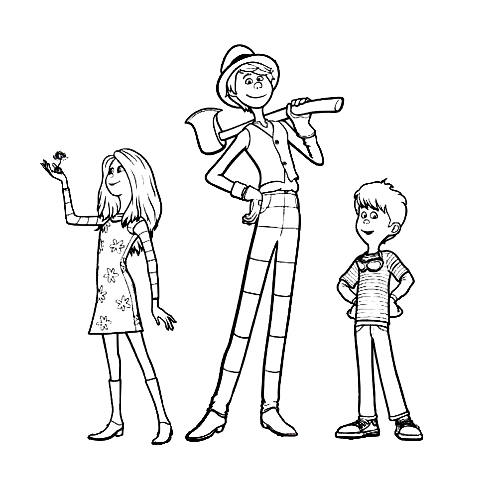 Lorax kleurplaat – Once-ler, Audrey en Ted