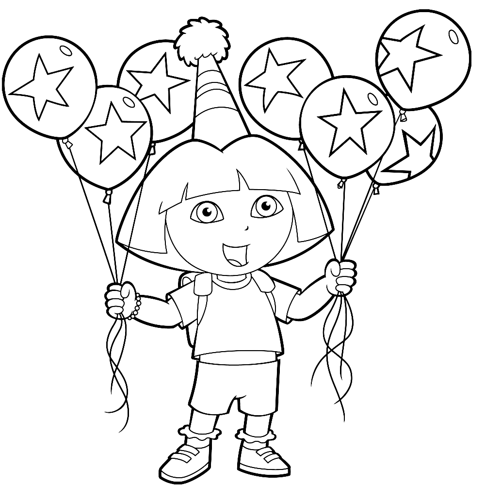 Dora de Verkenner kleurplaat – Dora met ballonnen