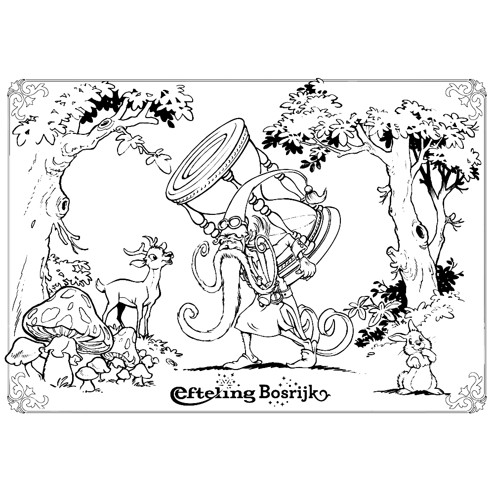 Print een mooie kleurplaat van een van de vele sprookjesfiguren uit attractiepark De Efteling: zoals ezeltje strek je, tafeltje dek je, Roodkapje, De wolf en de zeven geitjes, Klein Dumpje en Hans & Grietje.
