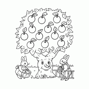 Konijntjes bij een appelboomTekst aan kleurplaat toevoegen Bekijk en print de grote versie