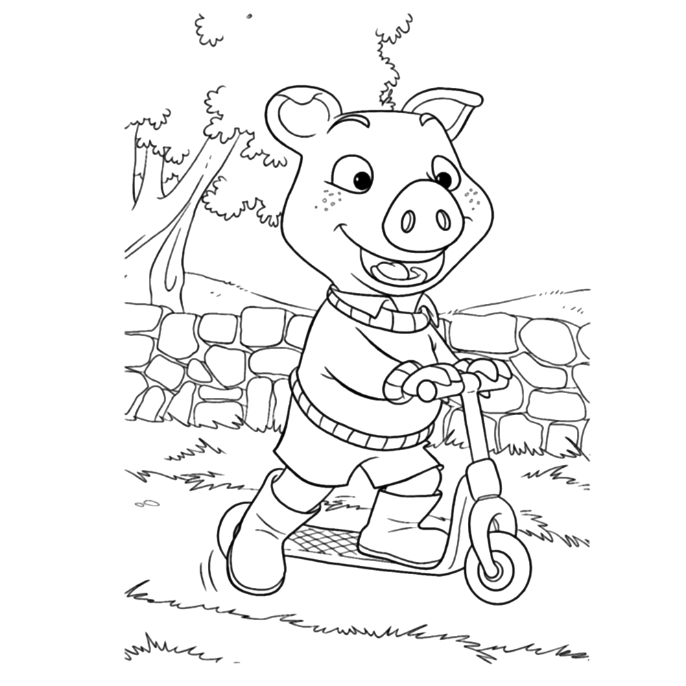 Piggley Winks Jakers! kleurplaat – Piggley op de step