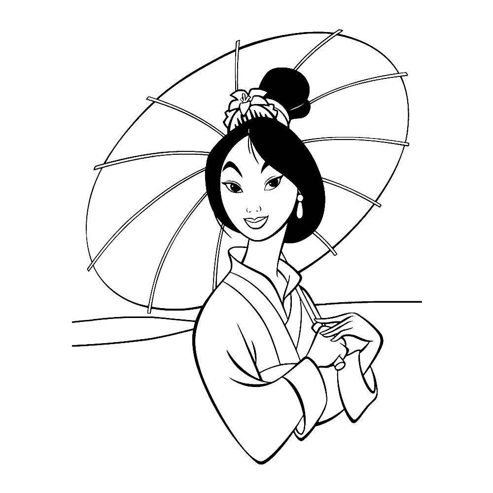 Mulan kleurplaat – Mulan met parasol