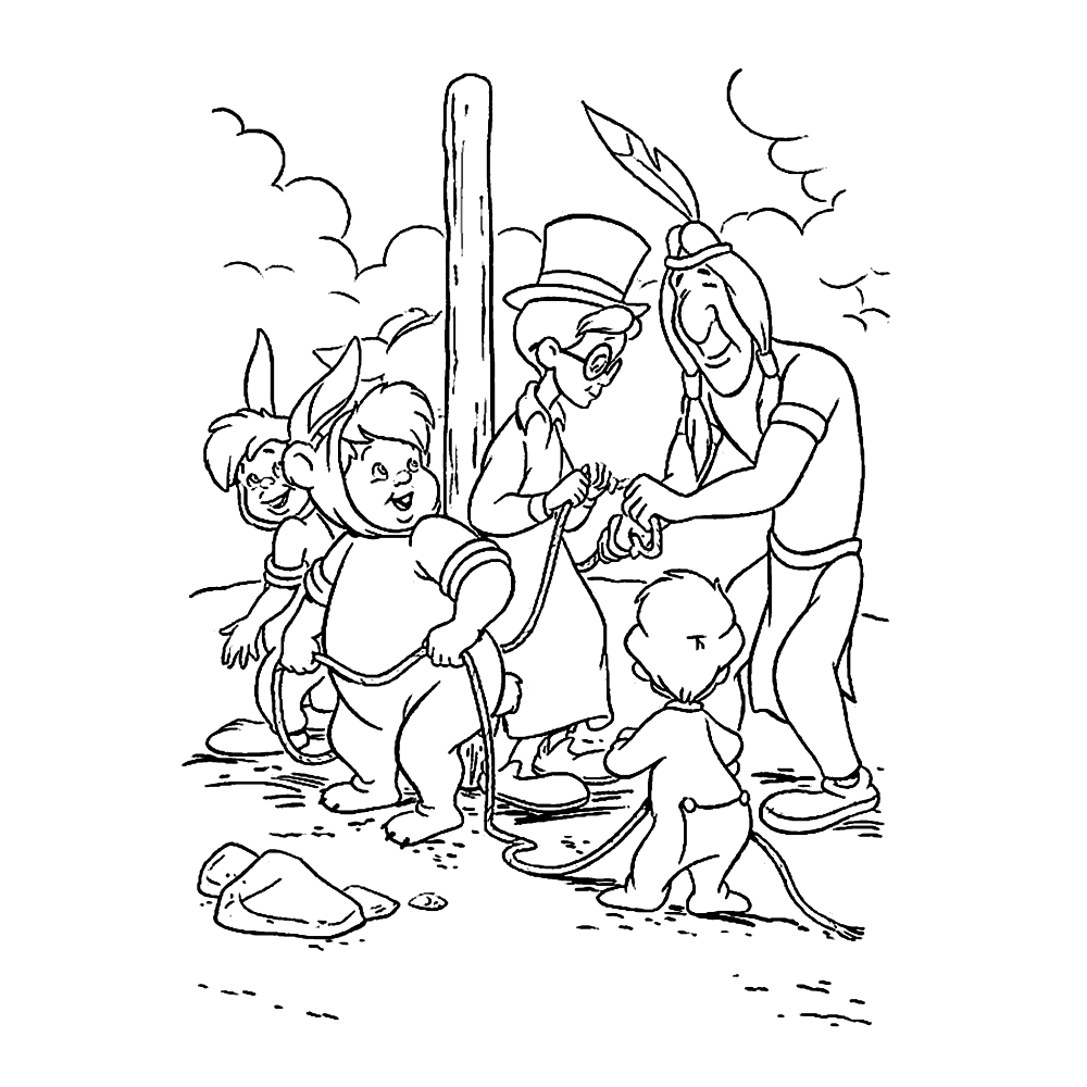 Peter Pan kleurplaat – De Lost Boys en de indianen