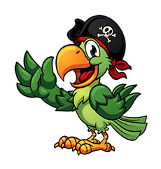 Har! Har! Har! Print een kleurplaat van een stoere piratenpapegaai.
