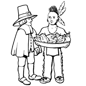Kolonisten en Indianen vieren ThanksgivingTekst aan kleurplaat toevoegen Bekijk en print de grote versie