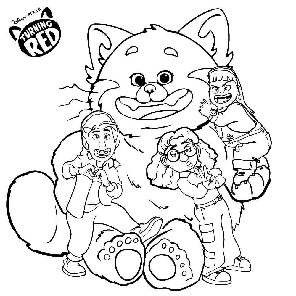 Print een leuke kleurplaat van de Pixar / Disney animatiefilm Turning Red (Over de rooie).