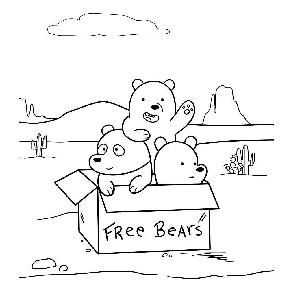 Print een leuke kleurplaat van de Cartoon Network televisieserie Wat Beren Leren (We Bare Bears).
