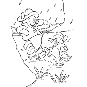 Teigertje en Roo stampen in de plassenTekst aan kleurplaat toevoegen Bekijk en print de grote versie