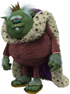 Koning PeppyPeppy was ooit de dappere koning die de Trolls hielp te ontsnappen uit Bergen Town. Nu zwaait zijn dochter Poppy de scepter in Trollendrop en speelt hij de prettig gestoorde en vergeetachtige opa. | ![]() |