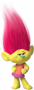 PoppyPoppy is meedogenloos optimistisch en een beetje goedgelovig. Ze is de dochter van ex-koning Peppy, die de Trolls naar de vrijheid leidde. Als haar vrienden gevangen genomen worden ontdekt ze dat niet elk probleem met een liedje, een dansje en een knuffel kan worden opgelost. | ![]() |